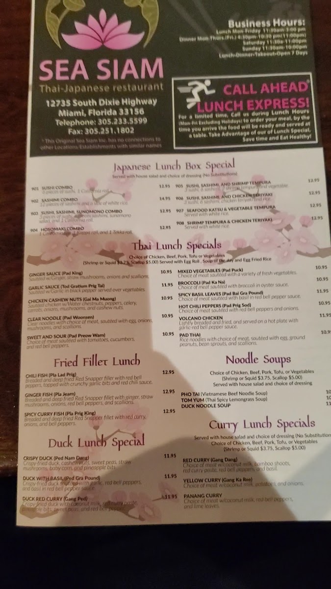 Sea Siam on 12735 S Dixie Hwy, Miami, FL 33156, United States, is one of those hidden gems that makes you wonder why you didn’t stumble upon it sooner. From the moment you step inside, the vibrant ambiance and aromatic scents instantly pull you into a world of authentic Thai cuisine with a coastal twist. Walking in for the first time, I was immediately struck by the open, airy layout, which combines casual comfort with subtle elegance-a perfect spot whether you're grabbing a quick lunch or enjoying a relaxed dinner with friends.